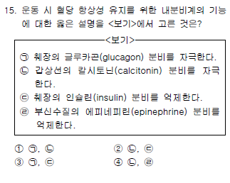 - ㄴ : 칼시토닌은 혈중 칼슘이 증가하면 뼈에서 칼슘 방출을 막아 혈장 칼슘을 감소시킴