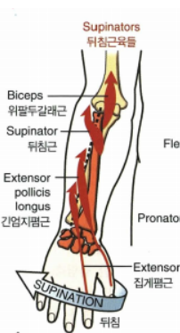 - 아래팔의 엎침은 어깨의 안쪽 돌림과 연결됨