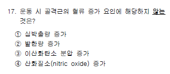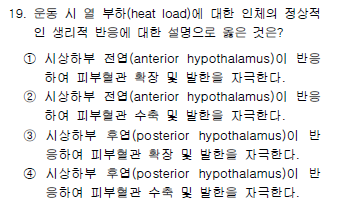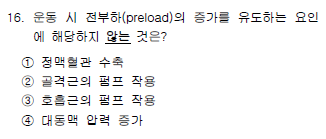 2016년 건운사 필기시험 운동생리학 16~20번은 심장의 전부하, 골격근의 혈류 증가 요인, 심장주기 중 등용성 수축기, 체온조절, 환기-관류 부조화에 대해 출제되었습니다.