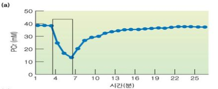 - 운동 초기에 근육의 PC농도가 감소함(ATP-PC시스템)