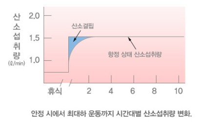 - 운동시작 후 초기의 산소섭취량과 항정상태 시 산소섭취량의 차이