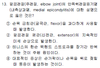 - ④ : 안쪽위관절융기염은 손목을 굽힐 때 통증이 발생함