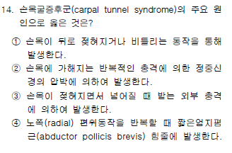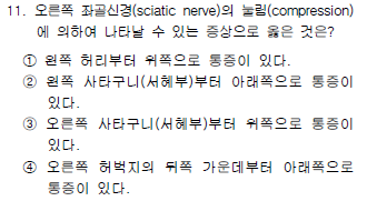 2016년 건운사 필기시험 운동상해 11~15번 문제는 좌골신경통, 오목위팔관절 탈구, 안쪽위관절융기염, 손목굴 증후군, 무릎의 가쪽곁인대 손상에 대해 출제되었습니다.