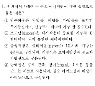- ② : 포도당은 대사작용에 중요한 탄수화물의 한 형태이며, 뇌의 유일한 에너지원