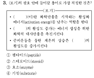 효소는 세포내의 대사작용을 조절하는 단백질로, 세포가 화학적 반응을 하기위해 필요한 활성화 에너지를 낮춰 화학반응 속도를 증가시키는 역할을 하며, 체온이 37도 이상일 때 활동이 증가됨