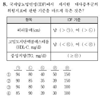 위의 문제인 국제 당뇨병연맹의 지표와는 조금 다르지만 허리둘레를 제외한 지표들을 맞추면 풀 수 있음