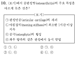 - ㄹ : 양쪽의 같은 관절에서 관절통이 발생하는 것은 류마티스 관절염의 증상