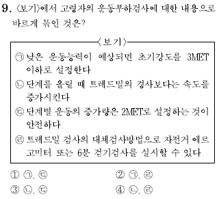 - ㄷ : 고령자의 경우 단계별 운동의 증가량은 1/2MET 씩 증가