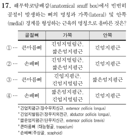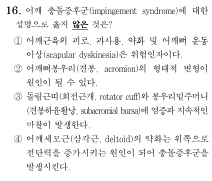 2017년 건운사 필기시험 운동상해 16~20번 문제는 어깨충돌증후군, 해부학코담배갑, 골화근염, 선수의 신체검사, SOAP에 대해 출제되었습니다.