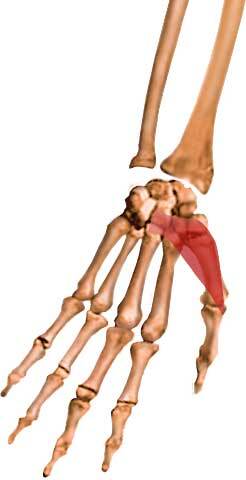 - 정지 : 엄지 몸쪽손가락뼈의 바닥의 노쪽면(무지 근위지골 기저의 요측, radius aspect of base of the 1st proximal phalanx)