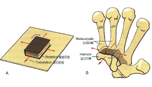 - 병진운동(미끄러짐)과 약간의 돌림운동이 결합된 움직임 가능