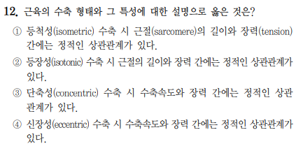 ① : 등척성 수축은 근육의 길이가 변하지 않으므로 길이와 상관관계X