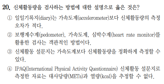 ③ : 가속도계가 신체활동 설문지보다 신체활동량을 정확히 측정 가능