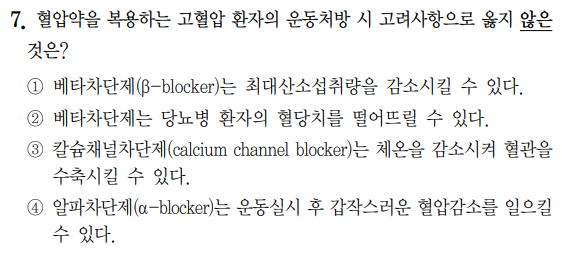 - ③ : 칼슘채널차단제는 칼슘 채널을 차단해 심근 등에 칼슘 유입을 억제해 혈관을 확장 시킴
