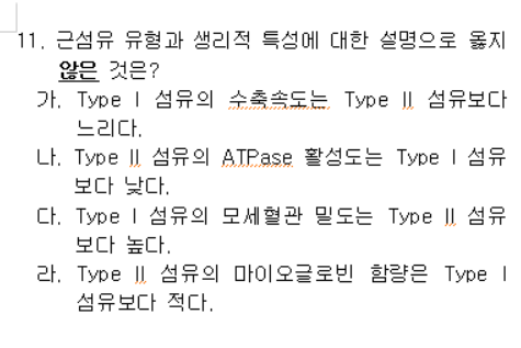2015년 건운사 필기시험 운동생리학 11~15번 문제는 근섬유 유형과 내분비계, 폐에 대해 출제되었습니다.
