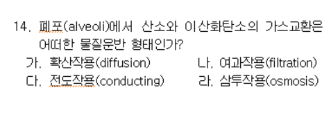 심장에서 폐로 들어가는 혈액은 이산화탄소와 산소의 분압이 낮아 폐포에서 이산화탄소는 폐포로 확산되고 산소는 폐포에서 혈액으로 확산된다.