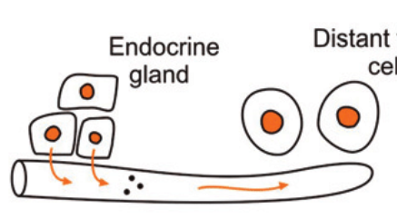 - 세포들이 호르몬을 방출해 신체 전체로 퍼져 특정 수용체에 도달하면서 발생