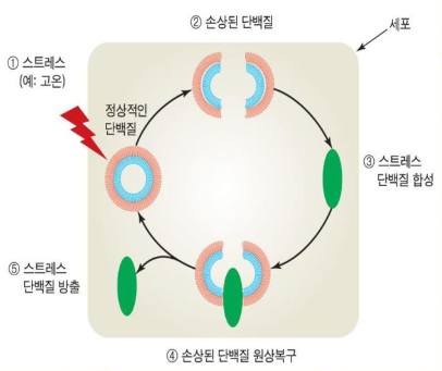 5. 세포의 항상성을 방해하는 스트레스 발생 시 세포 단백질이 손상되는데, 이때 스트레스 단백질은 손상된 단백질을 온전한 단백질로 원상 복귀시켜 항상성을 유지함