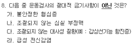 - 라 : 운동부하검사는 질환의 진단에 효과적인 검사