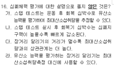 - 라 : 장거리 달리기를 통해 최대산소섭취량을 추정할 수 있음.