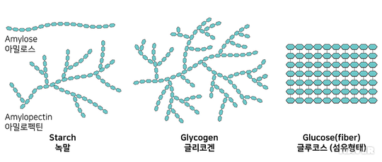 3. 인체 내의 포도당은 글리코겐(당원)의 형태로 간과 근육에 저장됨