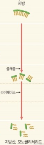 - 지방분해과정을 통해 지방산으로 분해되어 에너지원으로 사용됨