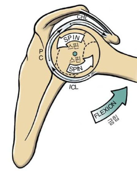 - 위팔뼈머리 스핀은 오목위팔관절의 대부분 구조를 팽팽히 만듦