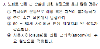 - ① : 노화로 인한 근 손실은 규칙적인 운동을 통해서 예방과 지연이 가능하다.