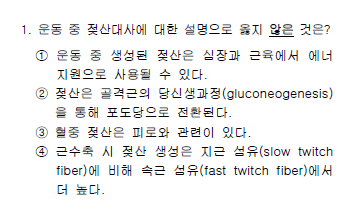 2016년 건운사 필기시험 운동생리학 1~5번 문제는 젖산대사, 혈류재분배, 노화로 인한 근 손실, 심장의 전기적활동, 호흡/순환계의 가스 확산에 대해 출제되었습니다.