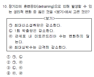 2016 건운사 필기시험 운동생리학 6~10번 문제는 교차신근반사, 운동 시 혈장량 감소가 미치는 영향, 저온환경에서의 순응, 운동시 호르몬 작용, 장기간 훈련중단의 영향에 대해 출제되었습니다.